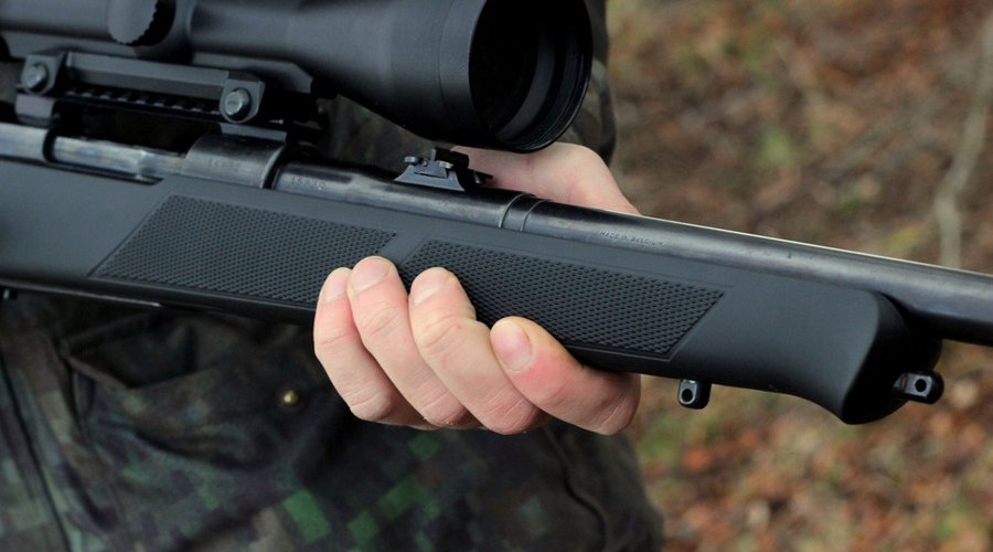 Ich tauschte die Riemenbügel die standardmäßig am Schaft montiert waren gegen Schnellverschluss-Bügel aus Stahl, da die mitgelieferten Bügel fest montiert sind. Außerdem wurde eine zweite Riemenöse für ein Zweibein am Vorderschaft montiert. Diese Arbeit dauerte, dank der schon vorhandenen Vorbohrung im Schaft, nur wenige Minuten. Auf dem Kammerstengel befestigte ich einen sogenannten "Race-Bolt" um etwas mehr Griff beim Repetieren zu haben. Hierbei handelt es sich um eine Gummikugel mit einem Loch, welche unter starkem Druck auf den Kammerstengel geschoben wird und dort ohne Verwendung von Klebern oder sonstigem hält. Den "Race-Bolt" verwendete ich schon an meiner "alten Büchse" mit vollster Zufriedenheit. Über den Hinterschaft kam ein Schaftmagazin von "Beartooth" im Tarnmuster "Break-Up-Infinity" von Mossy Oak. Fertig war die alte "neue" Waffe so wie ich mir sie gewünscht hatte. Eingeschossen wurde sie mit einer Selbstgeladenen TTSX von Barnes in 10,4 Gramm.