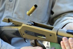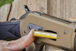 Der Unterhebelrepetierer aus Italien trägt den vielversprechenden Namen "Boarbuster", also Sauenjäger. Der Umstand, dass aus fast jeder Position die Schußabgabe und der anschließende Repetiervorgang durchgeführt werden kann – ohne die Waffe absetzen zu müssen – hat dieses System nie aus der Mode kommen lassen. Die großkalibrigen Waffen dieser Reihe sind nicht in erster Linie bekannt für ausgesprochene Präzision oder für das Überwinden langer Distanzen zum Ziel, aber die Durchschlagskraft und Stoppwirkung aus kurzen Entfernungen dürfte ohne Zweifel einer der wesentlichen Vorteile dieser Gewehre sein. Bei der Testwaffe besonders auffällig: die spezielle Cerakote-Beschichtung der Metallteile bei Lauf, Magazin, Systemkasten und Unterhebel. Die Lauflänge beträgt 483 mm bei einer Gesamtlänge von 950 mm. Der Unterhebelrepetierer wiegt knapp 3,3 kg. An Kalibern für die Boarbuster aus dem Hause Pedersoli steht noch .444 Marlin zur Verfügung. Maximal fünf Patronen fast der Boarbuster – plus eine im Patronenlager.
