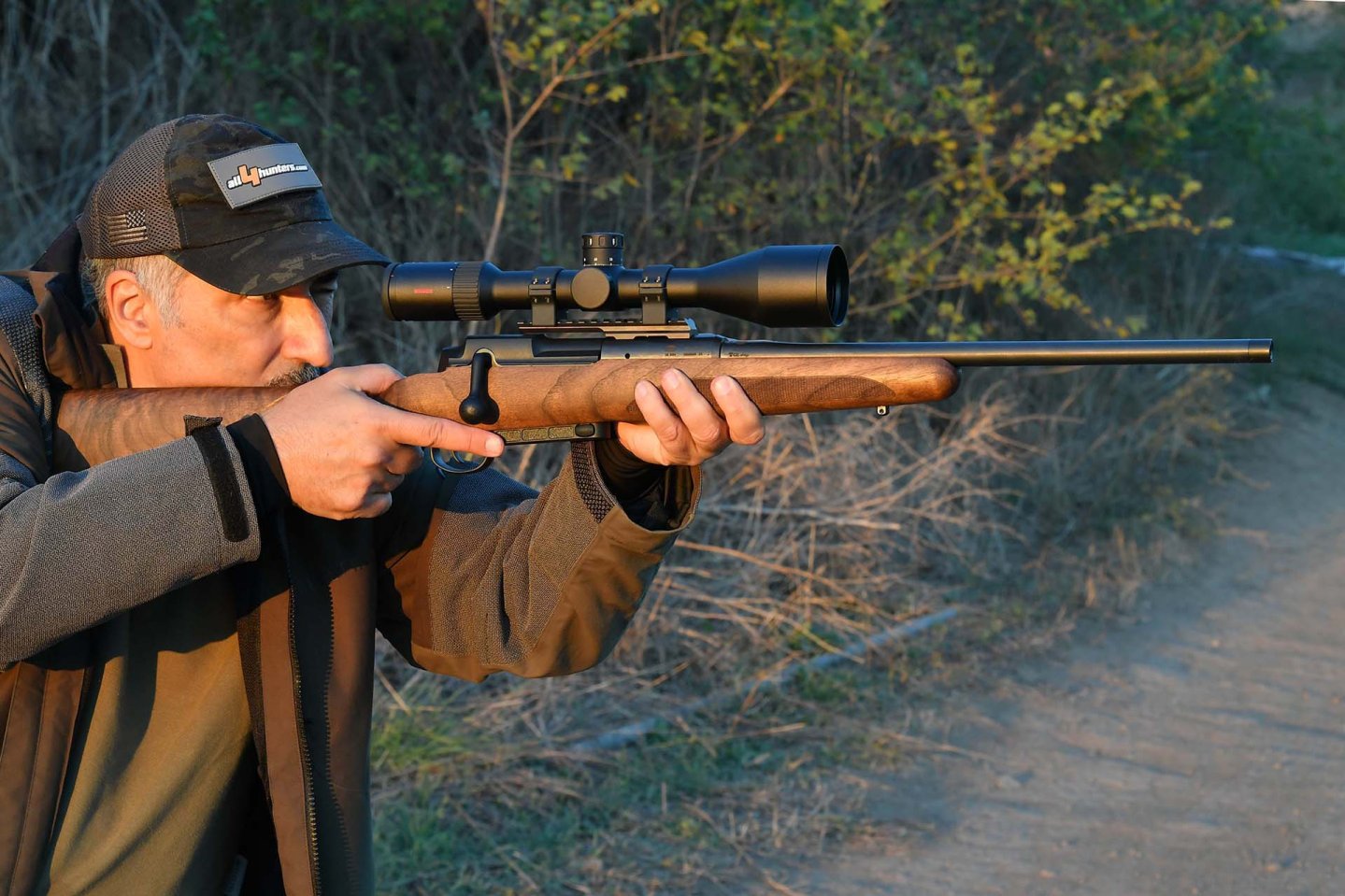 Mit Blick auf einen demnächst hier folgenden weiteren Testbericht zum Mauser M25 haben unsere italienischen Kollegen die Testwaffen erst einmal nur einem kurzen Präzisionstest mit einer bewährten Trainingspatrone aus dem Long Range-Schießsport unterzogen: der Target HP mit 168 Grains schwerem Hohlspitzgeschoss von GECO. Dafür erfolgte dieser Präzisionstest neben der obligatorischen 100-Meter-Distanz auch gleich noch auf 200 m Entfernung. Dafür statten sie den Mauser M25 Pure mit einem Minox RS-4 3-12x56 Zielfernrohr inklusive BDC-Turm aus. Das Kürzel steht für Bullet Drop Compensator und weist darauf hin, dass sich damit, sofern der Jäger, weiß wie das funktioniert, der Geschossabfall auf unterschiedliche Entfernungen kompensieren lässt. Das hier verwendete RS-4 besitzt klassisches 4er Absehen in der 2. Bildebene und besitzt einen feinen Leuchtpunkt in der Fadenkreuzmitte. Das Minox RS-4 BDC ist mit einem Listenpreis von 925,- Euro vergleichsweise günstig in seiner Klasse. Ohne den BDC-Turm kostet das RS-4-Glas 825,- Euro.