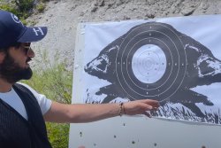 Wir hatten die Gelegenheit die Iside Safari Express auf dem Laufenden-Keiler-Stand der Schießanlage des T.A.V. Valle Duppo zu testen. HIerbei sei aber gleich angemerkt, dass der "Laufende Keiler" hier anders funktioniert als auf einer den deutschen Jägern vertrauten DJV-Schießanlage. Bei der italienischen Variante hat die Wildschweinsilhouette auf der Scheibe zwei Häupter, es handelt sich hier quasi um zwei Vorderhälften die sich in der Mitte einer Ringscheibe treffen. So kann das Schwein sowohl beim Vorwärtsfahren, wie auch beim Rückwärtsfahren der Scheibe beschossen werden. Die Entfernung zum Ziel beträgt dabei 50 m.