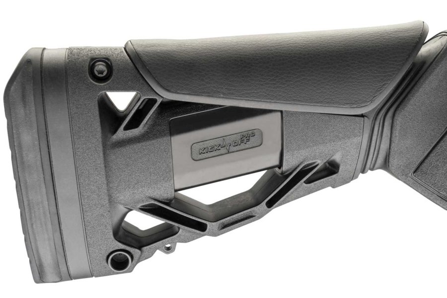 Der Kick-Off Pro-Schaft der neuen Beretta AX800 Suprema wurde entwickelt, um Umwelteinflüssen zu trotzen und sein volles Potenzial mit Supermagnum-Munition zu entfalten. Er reduziert den Rückstoß, so Beretta, um bis zu 70 Prozent, um auch bei hohen Schussserien nicht nur Hämatome zu vermeiden, sondern auch stets die Flinte sicher kontrollieren und ins Ziel bringen zu können. Dafür sorgen hydraulische Stoßdämpfer im Schaft, die jeden Schuss weicher machen und dabei helfen, das Ziel schnell wieder aufnehmen zu können.