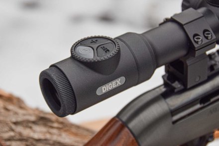Die Zielfernrohre der Digex-Serie basieren auf der cleveren Idee, ein optronisches Gerät mit dem Erscheinungsbild und den Dimensionen eines klassischen Zielfernrohrs mit 30 Millimeter Mittelrohrdurchmesser zu konstruieren. Da hier 30-mm-Standardringe passen, erleichtert das die Montage auf der Waffe erheblich. Das Pulsar Thermion stellt ein Beispiel für ein Wärmebild-Zielfernrohr dar, das diese Konstruktionsweise mit dem Digex gemein hat. Beim Thermion begeisterte mich auch schon die Idee, mit zwei Akkus zu arbeiten. Es ist definitiv ein großer Vorteil, dass, dank des fest in die Optik integrierten Akkus, der zweite Akku bei eingeschaltetem Gerät einfach und schnell ausgetauscht werden kann − das hilft insbesondere bei langen Jagdeinsätzen doch sehr.