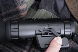 An der Unterseite des Batteriefachs befindet sich eine weitere ¼“-Gewindebuchse als Schnittstelle für ein Standardstativ-Gewinde. Da wo es im Ausland erlaubt ist kann das Wraith 4K Monocular auch über einen optional erhältlichen Picatinny-Adapter als Nachsatzgerät hinter einem Zielfernrohr auf einer entsprechend langen Pica-Toprail an Waffen bis einschließlich Kaliber .308 Winchester genutzt werden. Bis dahin garantiert Sightmark die entsprechende Schussfestigkeit der Nachtsichtoptik. In deutschen Revieren schiebt das Waffenrecht einer solchen Verwendung aber leider einen Riegel vor, da das monokulare Nachtsichtgerät über einen integrierten IR-Strahler verfügt. Bei der jagdlichen Verwendung bleibt in Deutschland damit nur die Nutzung als handgehaltenes Beobachtungsgerät.