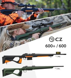 Speziell für den harten Einsatz bei Drückjagden oder der Nachsuche konzipiert bietet AKAH die CZ 600+ Ergo Driven Hunt als zweite Generation an, die mit schwarzem Ergo-Schaft, orangenen Einlagen für bessere Sichtbarkeit und ergonomischem Kammergriff ausgestattet ist. Ein einstellbarer Direktabzug, die geflutete Kammer, eine Sub-MOA-Garantie und die Möglichkeit zum späteren Laufwechsel sind die überzeugenden Features für den erfolgreichen Jagdeinsatz. Die CZ 600 Ergo ist bei AKAH für 1.559,- Euro erhältlich, die CZ 600+ Ergo Driven Hunt kostet 1.749,- Euro.