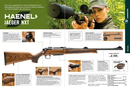 Der deutsche Hersteller Haenel platzierte mit dem Jaeger NXT eine neue Generation von Jagdbüchsen im boomenden Marktsegment der bezahlbaren Geradezugrepetierer. Das Gewehr bietet ein Leichtmetall-System, eine Drei-Warzen-Verriegelung und einen umweltfreundlichen Verbundholzschaft. Insgesamt achtet Haenel beim Jaeger NXT auf Nachhaltigkeit: neben Kunststoffteilen auf Baumharz- und Cellulosebasis setzt der Hersteller auf eine besondere "Green Barrel"-Technologie, bei der der gehämmerte Lauf auch für die intensive Nutzung von bleifreier Munition optimiert ist. In unserem Praxistest ermöglichte der Haenel Jaeger NXT nach einer kurzen Eingewöhnungsphase sichere und schnelle Schussfolgen. Aktuell gibt es den Haenel Jaeger NXT bei FRANKONIA zum Sparpreis von 1.799,- Euro.