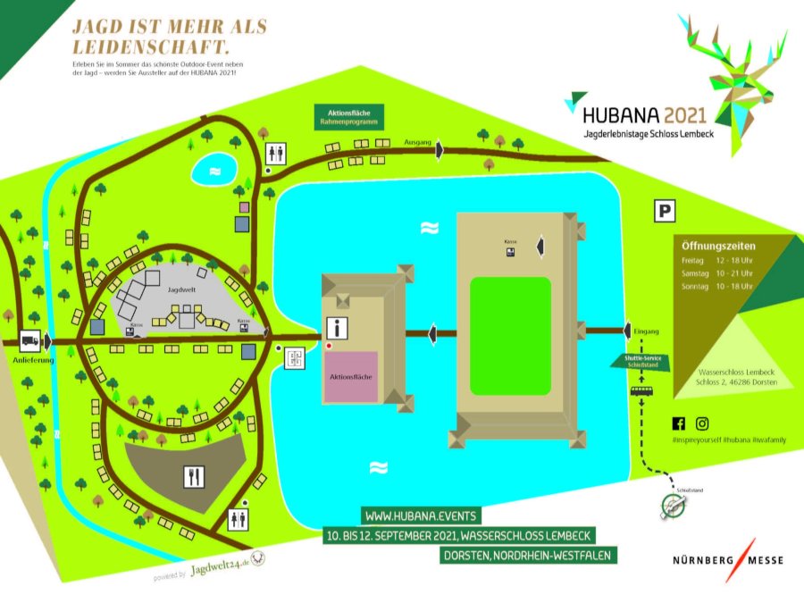 Die "HUBANA – Jagderlebnistage Schloss Lembeck" findet im Spätsommer 2021 in Nordrhein-Westfalen als Open-Air Event statt und richtet sich an Konsumenten. Grenznahes, europäisches Flair gepaart mit Produkttests unter freiem Himmel sollen ein Erlebnis der besonderen Art ermöglichen. Hier treffen Tradition und Brauchtum auf Trends und Innovation. Die HUBANA fungiert zudem als Startschuss einer Veranstaltungsserie, denn Partnerveranstaltungen innerhalb Deutschlands und im europäischen Ausland werden folgen.