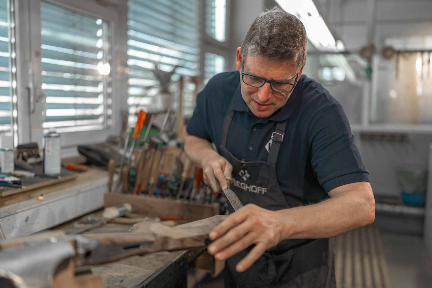 Büchsenmacher, Schäfter und Graveure sind bei Krieghoff verantwortlich für die Gewehrfertigung. Wie wird vor Ort gearbeitet?