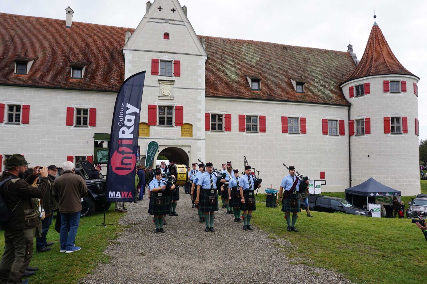 Für das leibliche Wohl ist natürlich auch gesorgt. Der Biergarten im Schloss-Innenhof wird wieder geöffnet sein, die erstmals für 2024 verpflichtete Brauerei Benediktiner Weissbräu bringt aber neben Flüssigem auch ein eigenes Festzelt mit. Überhaupt hat sich das Konzept der stabilen Fest- und Ausstellungszelte in Grünau bewährt; während bei anderen Jagd- und Outdoormessen schon oft Starkregen und Überschwemmungen die Veranstaltungen wie manche zu leichten Partyzelte kippen ließen, haben die großen Zelte in Grünau einen stabilen Unterbau. Man ist zwar nicht völlig vom Wetter unabhängig (Sonnenschein ist bestellt), aber wenn es schüttet, gibt es genügend Ausweichmöglichkeiten.