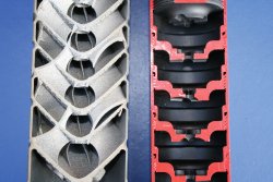 aus Titanlegierung aus dem 3D-Drucker kommt im Vergleich zur herkömmlichen Herstellung ohne Schrauben oder Schweißen aus. Das vermeidet doppelte Wandstärken bei besserer Stabilität.