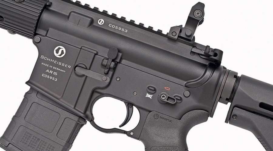 Schmeisser AR-15: Das geschmiedete, harteloxierte Griffstück und Systemgehäuse aus der Schmeisser Manufaktur besteht aus hochbelastbarem 7075-T6 Aluminium, wie es die militärischen Spezifikationen fordern.