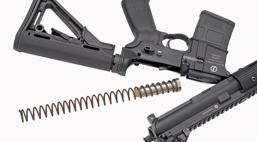 VTAC Schmeisser AR-15: Die Multi-Draht Bufferfeder sorgt gegenüber einer Standard-Rundstahlfeder für einen glatteren und ruhigeren Verschlusslauf, was sich positiv auf das Schussverhalten auswirkt.