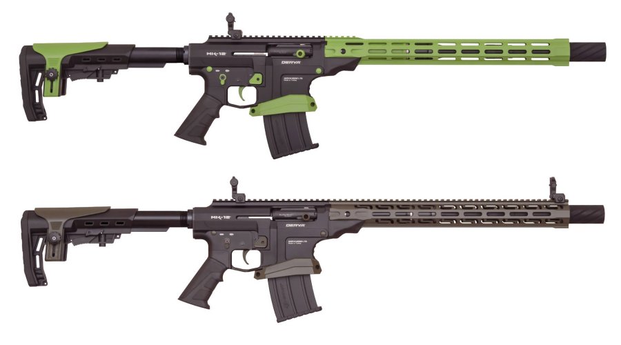 Die MK12-IPSC ist im Sommerangebot für 1.199,- Euro erhältlich, ganz egal, für welche der 5 Lauflängen Sie sich entscheiden. Ganz in Schwarz gehalten ist die reguläre DERYA MK12, die mit 3 Magazinen (2, 5 und 10 Schuss) ausgeliefert wird. Auch sie ist in 5 Lauflängen von 220 bis 610 mm erhältlich und kostet jeweils nur 949,- Euro. Desweiteren gibt es eine Special Edition mit Anbauteilen und Handschutz in "O.D. Green" oder "Zombie Green". Die MK12 in der Special Edition erhalten Sie zum Preis von 1.049,- Euro.