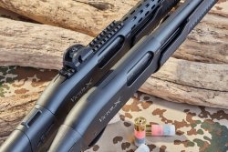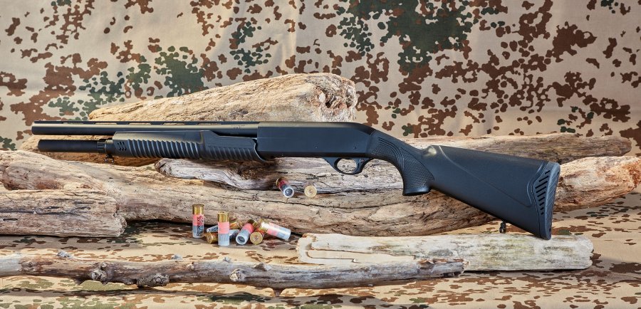 Das Leichtmetall-Gehäuse besitzt weder eine Montageschiene und noch ein Ghost-Ring-Visier. Auch trägt der Lauf weder Hitzeschutzblech noch Kornträger, verfügt dafür aber über eine ventilierte, 8 mm breite Laufschiene mit rotem Leuchtkorn, was eine schnelle Zielauffassung mit kontrastreichem Visierbild ermöglicht. Der größte Unterschied ist allerdings beim Schaft zu finden. Hier handelt es sich um einen normalen Standard-Schaft mit geradem Rücken ohne jegliche Verstellmöglichkeit. Das empfanden die Tester allerdings hier nicht als Nachteil, denn bei dieser Flinte passte der Anschlag auf Anhieb. Sehr gut gelungen ist die stark ventilierte Gummi-Schaftkappe. Durch die ausgeklügelt geschwungene Gestaltung der Kappe gibt diese beim Einsetzen in die Schulter leicht nach und sorgt so für einen hervorragenden Halt. Die Flinte sitzt wie angeklebt: top! Der Vorderschaft bietet keine Picatinny-Rail, was sich hier aus besagte Gründen leicht verschmerzen lässt. Allerdings könnte der Handschutz etwas griffiger sein. Natürlich wurden auch hier die Bedienelemente und die Ladeöffnung nicht modifiziert, respektive optimiert. Der Abzug erreicht nicht ganz die Werte des Triggers der Tactical und bricht mit geringfügig längerem Vorzugsweg bei durchschnittlich 2.150 g.