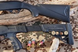 Der ungewöhnliche, optisch beeindruckende Teleskop-Schaft ist um rund 90 Millimeter längenverstellbar und verfügt über mehrere Riemenbügel-Aufnahmen sowie über vier runde Halterungen für Ersatz-Patronen. Schön, mal etwas anderes zu sehen als die sonst üblichen Schub-Schäfte im AR-15-Stil. Sowohl im aus- wie auch im eingefahrenen Zustand vermittelt der Schaft ein hohes Maß an Stabilität. Die drei Raststufen weisen kaum fühlbares Spiel auf. Auch die linksseitig angebrachte Drucktaste für die Längsverstellung wirkt stabil und verhindert jegliches unbeabsichtigtes Verstellen. Die sehr gut in der Schulter haftende asymmetrische Gummischaftkappe und der mit Fingermulden versehene, freistehende Pistolengriff aus griffsympathischem Kunststoff sorgen für einen sehr stabilen Anschlag. Trotz oder gerade wegen der Fingermulden eignet sich der Pistolengriff sowohl für kleine als auch für mittlere und große Hände. Im Gegensatz zu anderen asymmetrischen Schaftkappen passt der Anschlag gleichermaßen für Rechts- und Linksschützen. Zur Aufnahme von Zubehör verfügt der Kunststoff-Vorderschaft an der Unterseite über eine kurze Picatinny Rail aus dem gleichen Material. Wer als Sportschütze jetzt über einen taktischen Zusatzgriff nachdenkt, sollte sich zuerst informieren, ob das für ihn gültige Reglement so etwas überhaupt zulässt. Der BDMP etwa lässt Anbauten jeglicher Art am Vorderschaft nicht zu. Hier auch gleich der Hinweis zu den Patronenhalterungen im Schaft. Wer diese mit Patronen bestückt, der muss darauf achten, dass er die gegebenenfalls verbleibenden Patronen nach Beendigung seiner Disziplin wieder entfernt, bevor er den Stand verlässt. Sonst droht die sofortige Disqualifikation. Zum schnellen sportlichen Repetieren könnte der Vorderschaft etwas griffiger sein, wobei sich die Tactical-Flinte im Grunde ausreichend leicht und schnell repetieren lässt.