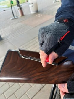 Der Schaft besteht aus schön gemasertem Nussbaumholz und hat optisch durchaus seinen Reiz. In puncto Haptik entspricht er jedoch nicht ganz meinem persönlichen Geschmack. Das Holz ist geölt, liegt angenehm in der Hand und wurde solide verarbeitet. Dank des verstellbaren Schaftrückens lässt sich die Flinte ergonomisch gut anpassen. Der Vorderschaft ist sportlich geschnitten und bietet auch bei längeren Trainingseinheiten oder Wettkämpfen einen guten Griff. Insgesamt ergibt sich eine stimmige Ergonomie, die sich sowohl im Trap als auch im Parcours positiv bemerkbar macht. Die Flinte führt sich kontrolliert und lebendig, nie hektisch oder schwammig.