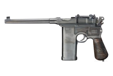 Los 3402 ist eine Mauser C96 Pistole im Kaliber 7,63 mm aus dem Jahr 1932 ("Mod. 712"), die hier mit Anschlagkasten/Holster mit sehr seltener Belederung angeboten wird. Die Pistole wartet mit nummerngleichen Teilen auf besitzt die Seriennummer 92118. Der Lauf, 140 mm lang und in ausgezeichnetem, blankem Zustand, die Kimme ist von 50 bis 1000 Meter einstellbar. Gestempelt ist die Pistole mit dem Beschusszeichen "Krone überm U" und der standardmäßigen Herstellerbeschriftung samt Mausertonne. Der Hahn und der Abzug weisen die typische graue Beizung auf, während die ursprüngliche Brünierung noch vorhanden ist, wenn auch mit normalen Gebrauchsspuren.