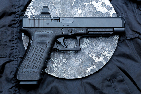 Seit nunmehr fünf Jahren liegt "die" Polymerdienstpistole in vierter Generation (Gen 4) vor. Somit besitzen natürlich auch die M.O.S.-Modelle als Unterbau das aktuelle, im Detail perfektionierte Gen 4-Griffstück mit auswechselbarem Griffrücken, vergrößertem Magazinauslöseknopf und griffigerer Oberflächenstruktur. Der lange Verschluss wurde in der hinteren Partie zwischen Kimme und Auswurffenster ausgefräst. Dadurch kann eine der vier im Lieferumfang enthaltenen Adapterplatten für verschiedene, besonders populäre Minileuchtpunktvisiere montiert werden.