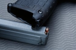 Im Magazinschacht des mit 26 mm ebenfalls äußerst schmalen Kunststoffrahmens sitzt ein Patronencontainer, der 30 Patronen fasst. Die beidseitige Drehhebelsicherung erlaubt ebenso wie der Magazinauslöser im Griffrücken hinter dem Magazin-schachteingang eine wahlweise Bedienung mit der rechten oder linken Hand. Die im Leerzustand nur 438 Gramm schwere KEL-TEC PMR-30 arbeitet mit einem simpel gestalteten, funktionssicheren Feder-Masse-Verschluss mit mechanischer Verzögerung und kraftschlüssiger Verriegelung.