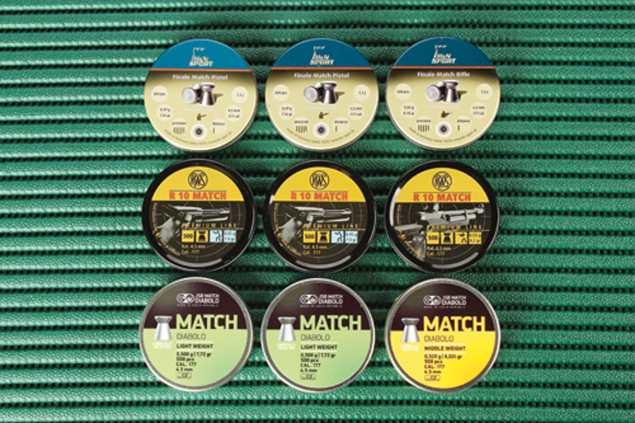 Je drei Diabolo-Lose pro Hersteller (H & N, RWS und JSB) wurden ausgewählt - zwei davon in der leichten LP-Gewichtsklasse und in den gängigen Kopfmaßen 4,49 und 4,50 mm. Dazu kam je eine etwas schwere und eigentlich für Luftgewehre gedachte Sorte, die erfahrungsgemäß ab und zu die engsten Schussbilder produziert.