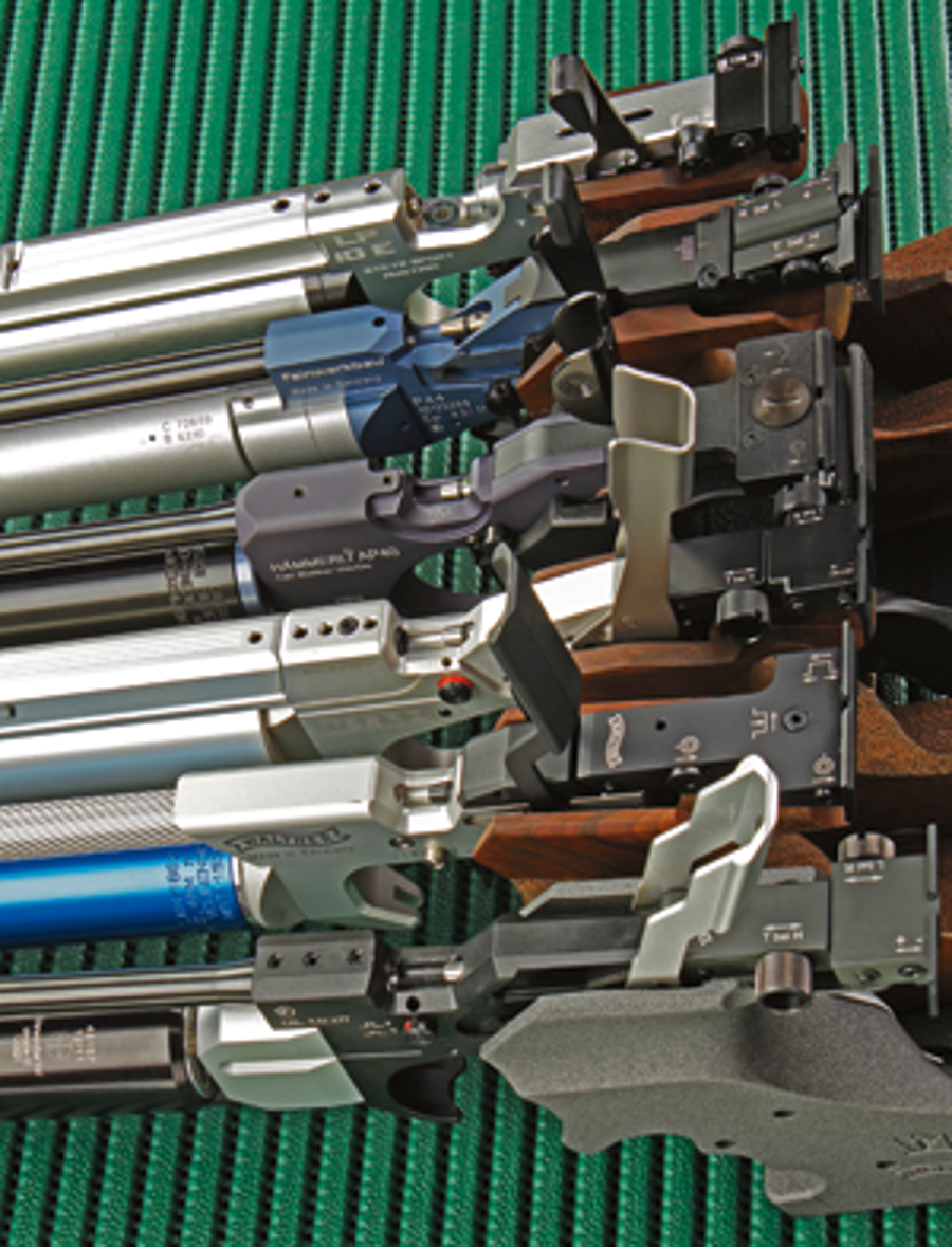 Selbst wenn die österreichische Firma Steyr Sport mit ihrem Modell LP 10 E (und der LP 10 mit mechanischem Abzug) die erfolgreichste Match-Luftpistole der vergangenen Jahre besitzt, hat jeder der hier gezeigten Verfolger ebenso seine Fangemeinde.