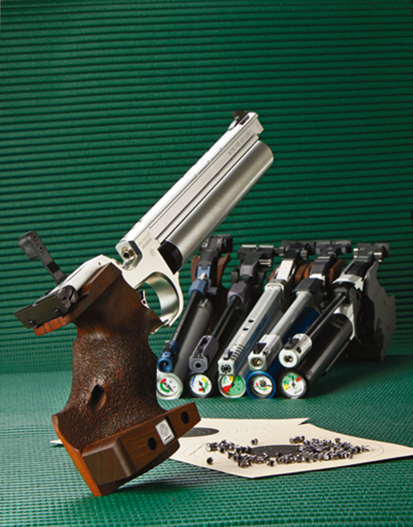 Selbst wenn die österreichische Firma Steyr Sport mit ihrem Modell LP 10 E (und der LP 10 mit mechanischem Abzug) die erfolgreichste Match-Luftpistole der vergangenen Jahre besitzt, hat jeder der hier gezeigten Verfolger ebenso seine Fangemeinde.