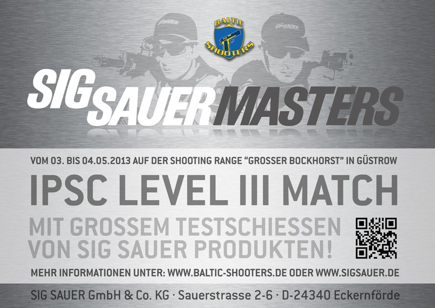 Auf der dortigen Range „großer Bockhorst“ wird an beiden Tagen des SIG Sauer Masters ein IPSC Level-III-Match ausgetragen. Zusätzlich gibt es die Möglichkeit, die umfangreiche Produktpalette von SIG Sauer zu begutachten und testzuschießen.