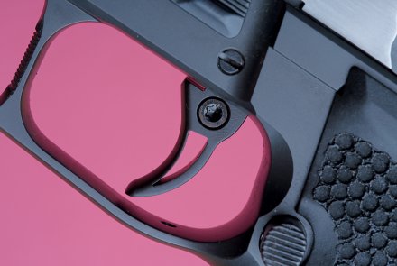 Die neue X-Six wäre aber keine echte Club-30-Waffe, wenn man nicht auch weitere "unsichtbare" Tuningmaßnahmen durchgeführt hätte. So wurden die Toleranzen zwischen den Führungsschienen von Griffstück und Verschluss durch mechanische Nachbearbeitung nochmals reduziert, sowie die Vorspannung des Laufes im Bereich der Schlittenmündungsbrille optimiert. Abschließend wurde die Single-Action-Abzugseinheit in ihrer Charakteristik noch etwas überarbeitet, die somit einem gut hergerichteten 1911er-Abzug in keiner Weise nachsteht. Mit einem Abzugsgewicht von 1.113 Gramm im Mittelwert ist er für die meisten Disziplinen mit 1.000 Gramm-Limit nahezu perfekt eingestellt und dürfte sich nach einer Einlaufphase dem vorgeschriebenen Limit noch etwas nähern.