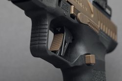 Die im Erscheinungsbild gefällige Pistole basiert auf der Technik der hunderttausendfach bewährten Canik TP-9/Mete-Modelle (hier geht's zum Test bei all4shooters.com). Diese Baureihen bestehen aus Polymerrahmen-Schlagbolzenschloss-Pistolen mit vollvorgespannten Single-Action-Abzügen und konstanter Abzugscharakteristik vom ersten bis zum letzten Schuss. Übrigens versteht sich der türkische Hersteller nicht nur auf den Bau von "Plastikpistolen", was die günstige Ganzstahlpistole Rival-S eindeutig bewiesen hat (siehe Testbericht). Dieses Modell und die neue TTI Combat stellen die derzeitigen Flaggschiffe von Canik dar. Schon auf den ersten Blick fällt die TTI Combat durch ihr "Burnt Bronze"-Cerakote-Finish auf, mit dem der Verschluss, die Bedienelemente, der Magazintrichter, die Magazinböden sowie der Griffrücken des ansonsten schwarzen Polymergriffstücks versehen sind. Ein weiterer Blickfang ist der kompakte Kompensator mit einer Expansionskammer, der den Coolness-Faktor unterstreicht. In den USA sind selbst bei subkompakten Defensivpistolen für das tägliche verdeckte Führen Kompensatoren groß im Mode. Ein Trend, über den man trefflich streiten kann.