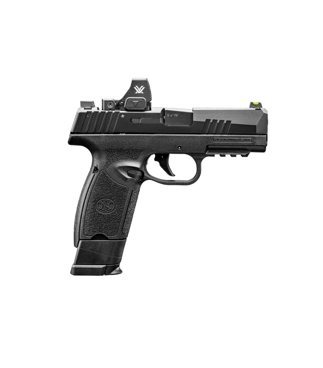 Die FN 309 MRD ist eine Polymerpistole mit Single-Action-Abzug. Das Kürzel MRD steht für Micro/Mini Red Dot: Entsprechend verfügt die 309 MRD über einen für die Aufnahme einer Optik vorbereiteten Schlitten zur Direktmontage von Rotpunktvisieren und ist mit DeltaPoint-Pro- sowie Shield-RMS-Footprints kompatibel. Die driftverstellbare Polymer-Visierung kombiniert vorn ein grünes Fiber-Korn mit einer weiß akzentuierten U-Kimme hinten. Da die FN 309 hier jeweils den gleichen Schwalbenschwanz nutzt wie die FN 509, stehen in Sachen Visierung zudem zahlreiche Aftermarket-Optionen zur Verfügung.