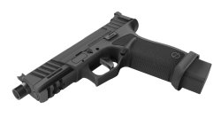 Vor dem Abzugsbügel ist eine durchgehende Zubehörschiene integriert, die ausreichend Platz für die Montage von – wo erlaubt – Waffenleuchten oder Lasermodulen bietet. Der Schlitten ist ab Werk für die Aufnahme von Optiken vorbereitet und wird mit vier Montageplatten geliefert, die mit den Schnittstellen der gängigsten Leuchtpunktvisiere kompatibel sind.