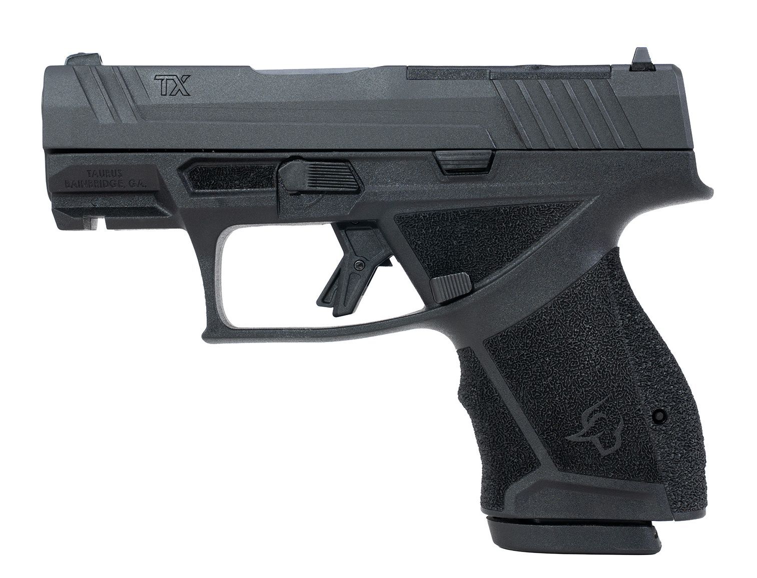 Ein beidseitig bedienbarer Schlittenfanghebel und umsteckbarer Magazinknopf, vier austauschbare Griffrücken für zusätzliche Anpassung, Standardschwalbenschwanzmontage für offene Visierungen: Das sind einige der Merkmale der Taurus TX9- Familie. (Die TX9-Pistolen werden ab Werk mit einer verstellbaren Kimme und einem auswechselbaren Korn mit weißem Kontrastpunkt geliefert).