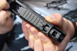 Wie bereits erwähnt, fällt der kaltgehämmerte und vier Zoll lange Lauf des Ported-Modells im Vergleich zum Standardmodell der CZ P-10 C um 10 % schwerer aus, um den Rückstoß beim Schießen zu minimieren. Aber das eigentliche Hauptmerkmal ist die große Kompensatoröffnung in der Nähe der Mündung, die entwickelt wurde, um den Hochschlag effektiv zu reduzieren. Darüber hinaus bietet die CZ P-10 C Ported einige weitere interessante Highlights, angefangen beim modifizierten Schlitten, der für die Montage von Rotpunktvisieren vorbereitet ist, und den verlängerten Serrations (Greifrillen) auf der Oberseite, die für einen sicheren Griff unter allen Einsatzbedingungen sorgen sollen.