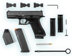 Neben der Waffe selbst wird jede GLOCK Gen6 Pistole mit insgesamt zwei Magazinen, einem Magazin-Schnelllader, einem Reinigungsset (Reinigungsstab mit integriertem Werghalter und einer Reinigungsbürste), der Bedienungsanleitung, einem GLOCK-Pistolenkoffer aus ABS-Kunststoff, zwei Wechselgriffrücken (2 mm und 4 mm) sowie drei Optikadapterplatten geliefert.