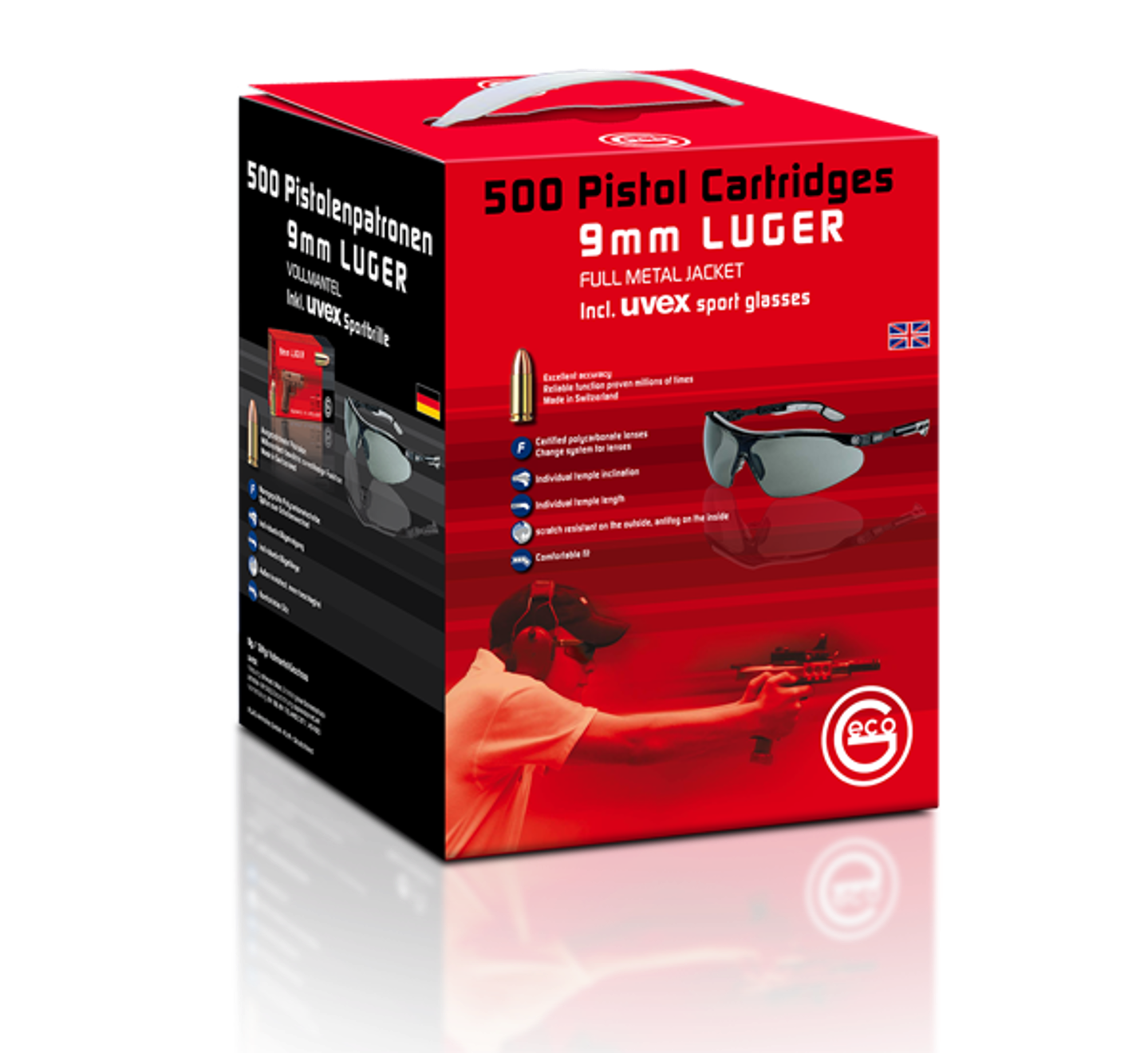 Die in der praktischen Trage-Box abgepackte Munition GECO 9 mm Luger ist ein Vollmantel-Rundkopf-Geschoss mit einem Gewicht von 124 grain (8,0 g). Bei den statischen Schießsportdisziplinen spielt Präzision eine zentrale Rolle. Aber auch die Kosten! Um im Training die Investitionen gering zu halten, wurde diese IPSC-anerkannte Patrone von GECO entwickelt und jetzt im günstigen Bundle angeboten: