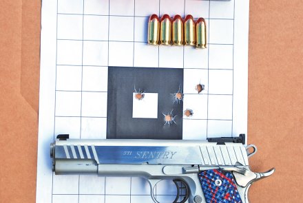 Getestet wurde die Fabrikmunition in Kombination mit einer STI 1911 Sentry Pistole und einem Smith & Wesson M625, beide in .45 ACP. Die klassische 230 Grain „Hardball“ Vollmantel-Rundkopf-Munition mit einer Patronengesamtlänge (OAL) von 31,78 mm produzierte aus der 1911 eine Geschwindigkeit von 237,1 m/s bei einem Power Factor 178,9 und einem Streukreis von 62 mm (5 Schuss). Die mit dem Smith & Wesson M625 Revolver gesammelten Daten: 234,0 m/s, 176.7 Faktor, 48 mm (6 Schuss).