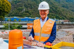 Die Zeremonie zum Beginn der Bauarbeiten − mit dem Signieren des "Grundsteins" und dem Errichten des ersten Betonfundaments fand vor dem Eingang an der Straße Viale delle Vittorie statt. Dabei drückte Präsident und CEO Franco Gussalli Beretta Startknopf, der den Beton in die Schalung fließen ließ. Der symbolische Akt fand im Beisein von Carlo Ferlito (Beretta, CEO und General Manager), Emanuela Delpani (Beretta Industrie, Manager), Marco Bassoli (Direktor für Technologie und Forschung/Entwicklung von Beretta) und als Ehrengast und Vertreter der Politik dem Bürgermeister von Gardone Val Trompia, Giuliano Brunori, statt, die alle ihre Signatur auf dem obligatorischen Grundstein hinterließen. Ein bedeutsamer Moment, der das Schicksal des Unternehmens einmal mehr mit seiner Region und seinen Ursprüngen verbindet, direkt am Fluss Mella, wo 1526 alles begann und die Geschichte von Beretta ihren Lauf nahm.
