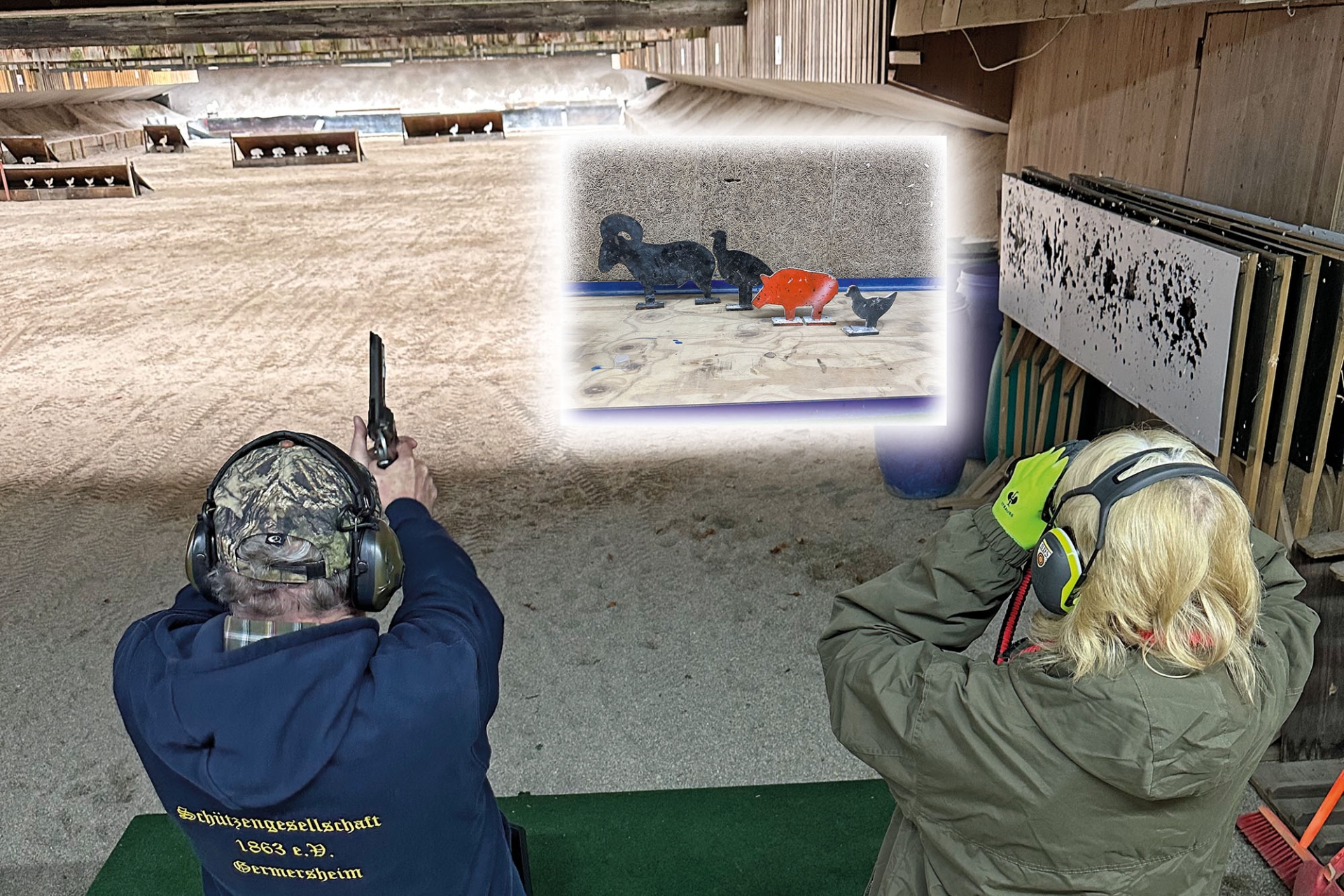 Was das Silhouetten-Schießen zudem noch praxisgerechter machen soll, ist die Anpassung der Waffenklassen. So gibt es sowohl beim Groß- als auch beim Kleinkaliber acht verschiedene Wertungsklassen. Diese unterteilen sich in Pistole oder Revolver jeweils mit mechanischer Visierung oder Optik und Repetiergewehre oder Selbstladegewehre in Kurzwaffenkaliber, und das alles noch einmal für Randfeuerkaliber. Dadurch haben Schützen des BDS-Standardprogramms die Möglichkeit, mit ihrem gewohnten Werkzeug am Wettkampfgeschehen teilzunehmen. Wer übrigens glaubt, bei Großkaliber muss es immer Magnum sein, um die Stahltiere vom Sockel zu fegen, der irrt. Bei einem guten Treffer fällt selbst der Widder auf der 50-Meter-Distanz noch mit einer 9 mm Luger. Wem 40 Schuss nicht genug sind, kann die Möglichkeit nutzen, in mehreren Klassen zu starten.