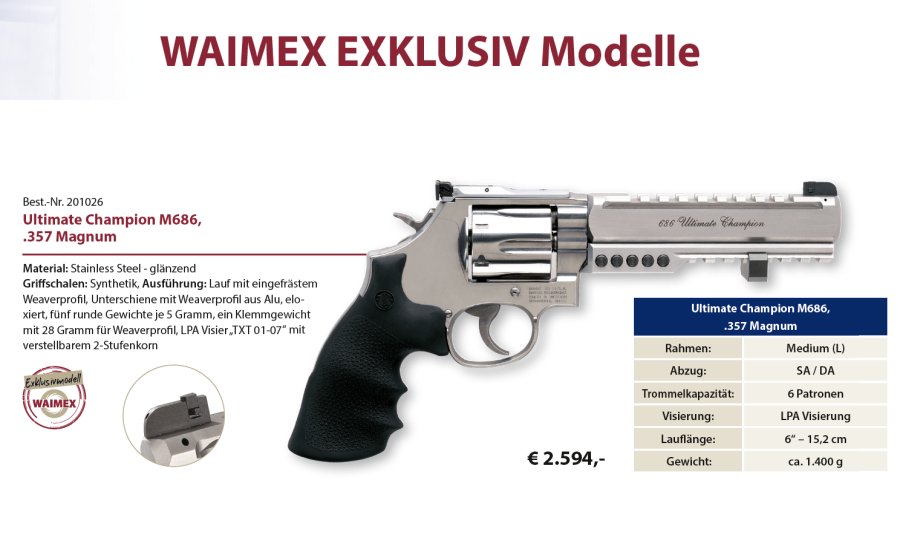 Smith & Wesson Ultimate Champion M686 in .357 Magnum: Der Match-Revolver kommt als Exklusivmodell über WAIMEX