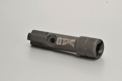 Der Name des Otis B.O.N.E. ist Programm. Das Akronym steht für "Bolt Operational Necessary Equipment", also „Werkzeug, um den Verschluss funktionsfähig zu halten“. Dieser Werkzeug-„Knochen“ ist sehr einfach konstruiert. Aus einem Stück Rundstahl hat es Otis herausgearbeitet. Das B.O.N.E. kann für drei AR-15-Teile verwendet werden: Verschluss, Verschlussträger und Schlagbolzen. Außerdem kann man es als T-förmigen Griff verwenden, um das Otis-Reinigungskabel durch den Lauf zu ziehen.
