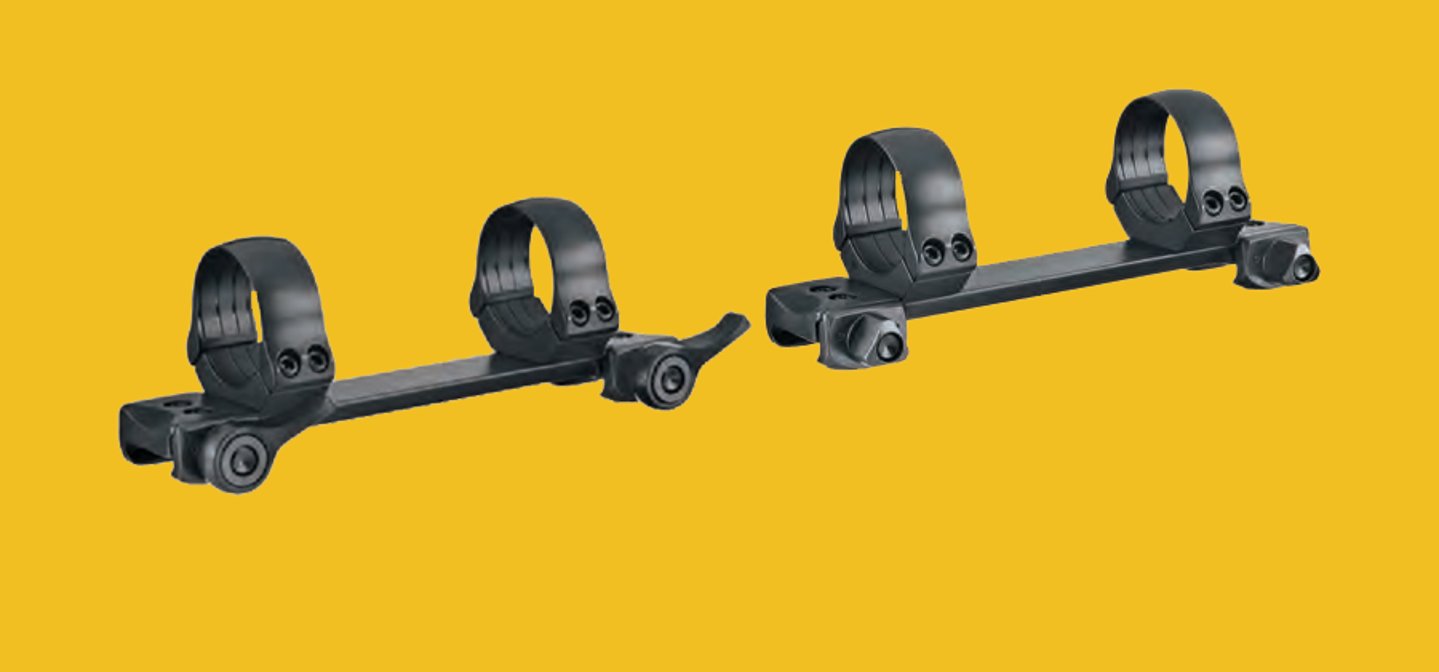 Die einteilige, sehr niedrig bauende Aufkippmontage aus hochfestem, schwarz eloxiertem Aluminium eignet sich bestens für jagdliche Repetierbüchsen mit Picatinny-Schienen nach