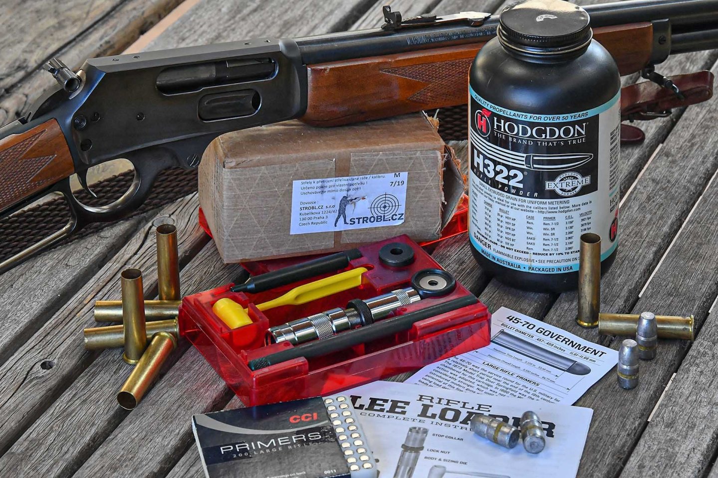Da es sich bei der .45-70 Gov't um eine zylindrische Hülse handelt, wagten wir den Versuch mit einem Unterhebel-Jagdrepetierer, einer Marlin M1895, trotzdem, weil es hier wahrscheinlich erschien, dass die mit dem Lee Loader wiedergeladene Hülse immer noch einwandfrei in das Patronenlager des Gewehrs passen könnte. Und: Spoiler-Alarm! In diesem Fall und mit diesem Gewehr, in Verbindung mit Standard- und nicht übertriebenen Ladungen, können wir schon jetzt verraten, dass es perfekt funktioniert hat!