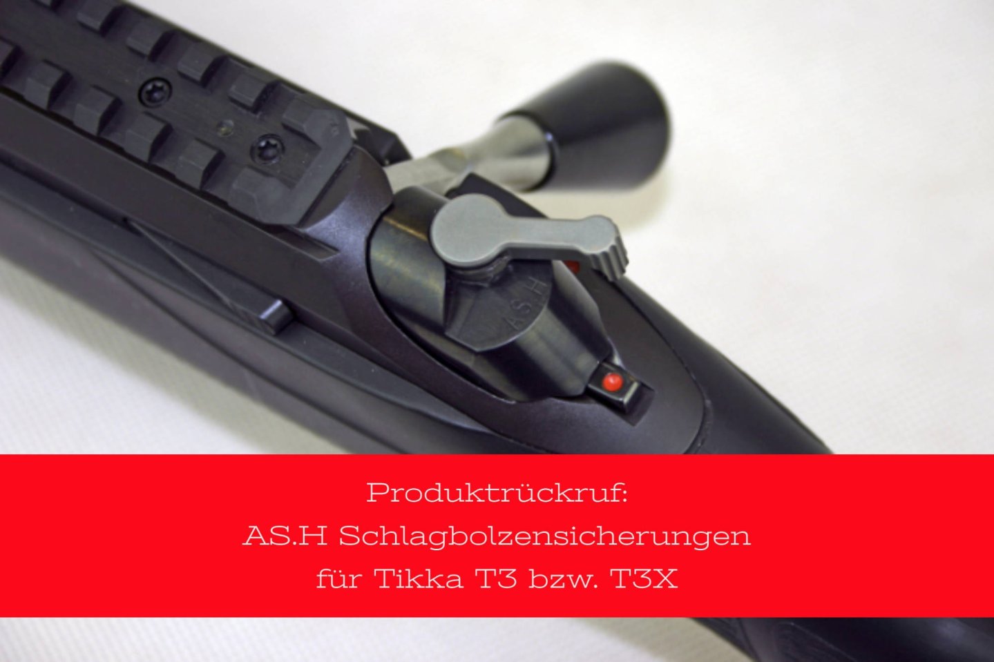Der Entwickler und Produzent dieser Schlagbolzensicherung, Herr Büchsenmachermeister Andreas Schuler, geschäftsansässig: Leitiweg 25, 89335 Hochwang, hat sich dazu entschlossen, einen Produktrückruf in Bezug auf die Schlagbolzensicherungen des Typs AS.H durchzuführen, sofern diese in Repetierbüchsen der Typen TIKKA T3 und T3X eingebaut wurden.