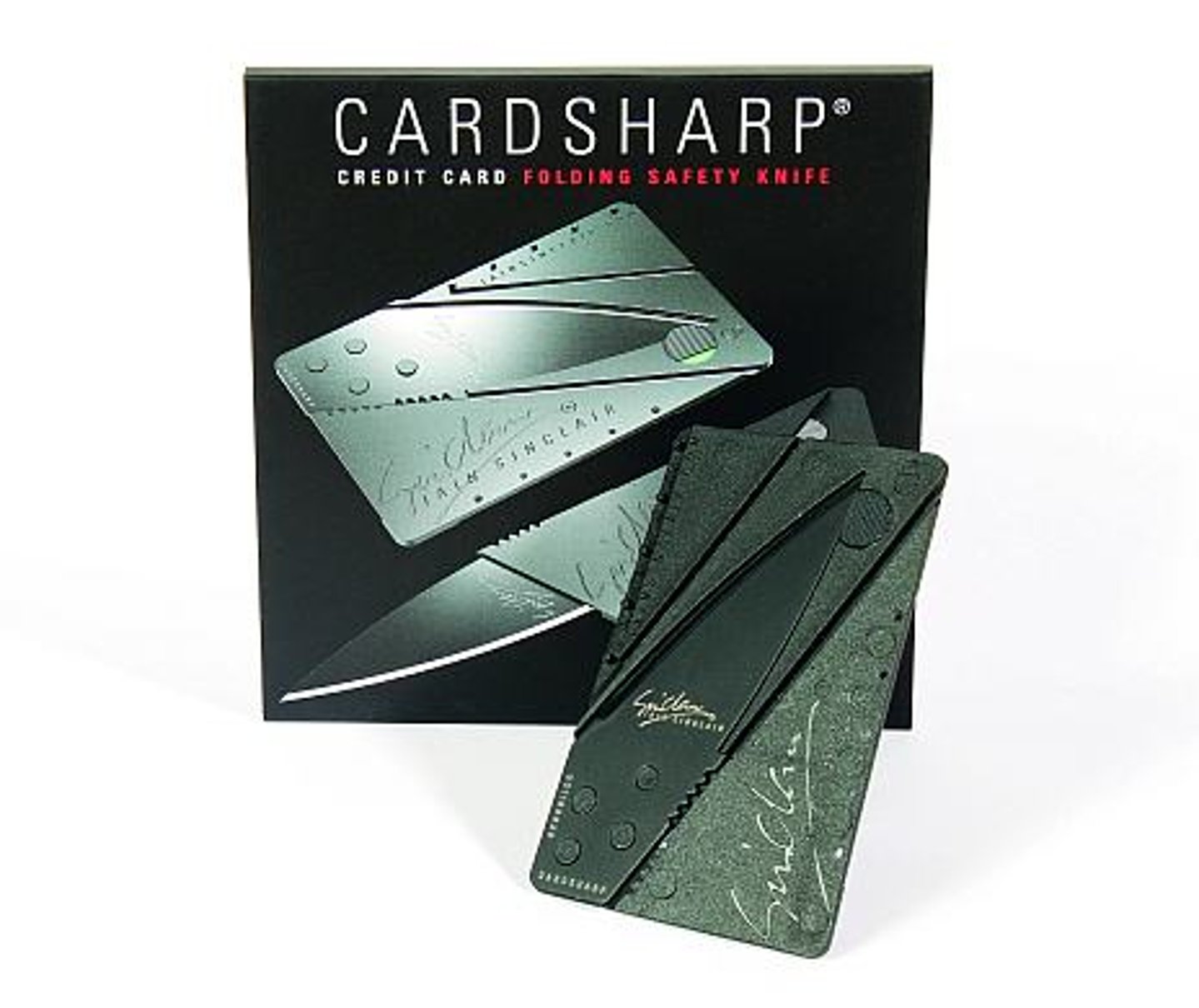 Das elegant-schwarze „Cardsharp 2“ von Iain Sinclair wird mit drei Handgriffen in ein praktisches Messer mit 65-mm-Klinge aus Chirurgenstahl verwandelt, die Gesamtlänge beträgt 140 mm. Beim Zurückverwandeln ins Kartenformat lässt sich die Klinge durch einen Drehknopf sichern. Die Karte wiegt samt Klinge nur 13 Gramm und ist gerade mal 2,2 mm hoch. Für Flugreisen nicht, ansonsten zum dauerhaften Verbleib in der Brieftasche zu empfehlen. Empfohlener Verkaufspreis 19,95 Euro bei www.fulmatech.de