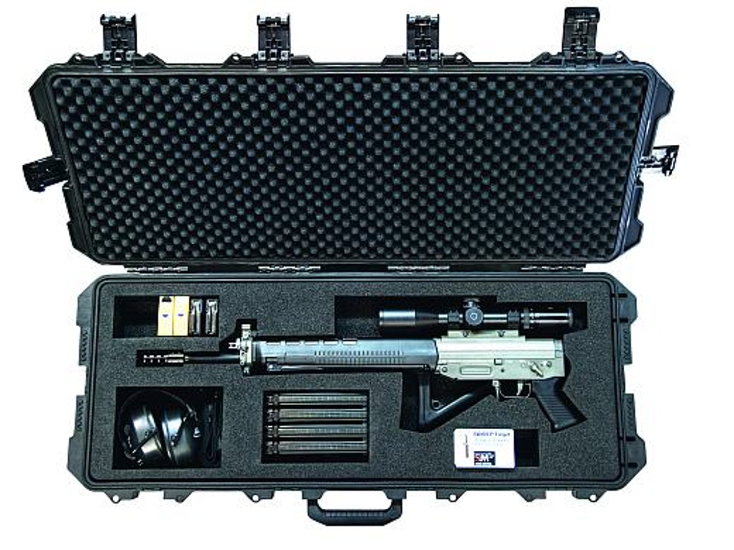 Der „Peli Storm Case“ besitzt eine harte Schale aus schlagfestem Kunststoff und ist nach Angaben des Herstellers wasser- sowie luftdicht. Für einen komfortablen Transport sorgen zwei Leichtlaufrollen. Waffe und Zubehör finden in maßgenauen Ausschnitten Platz. Die Außenmaße des Koffers betragen 927 x 355 x 152 mm. Preis: 690 Euro inklusive Mehrwertsteuer. www.sg550.de