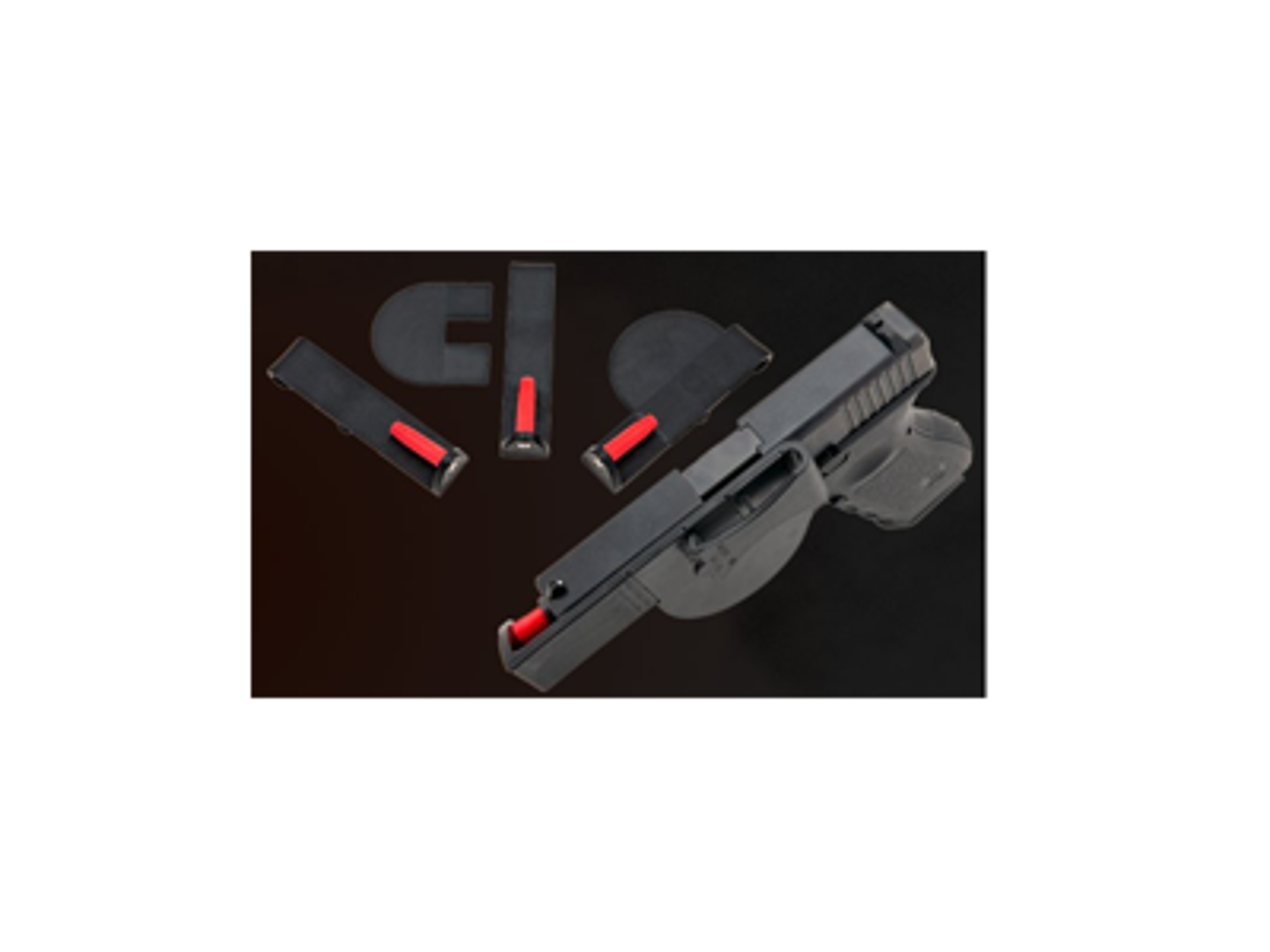 Auf den genannten Zapfen stölpt man die Mündung des jeweils bevorzugten Pistolen-Modells. Stecken dann Waffe und Tragevorrichtung zwischen Hose und Hüfte, fixiert der dabei entstehende Druck die Kurzwaffe.