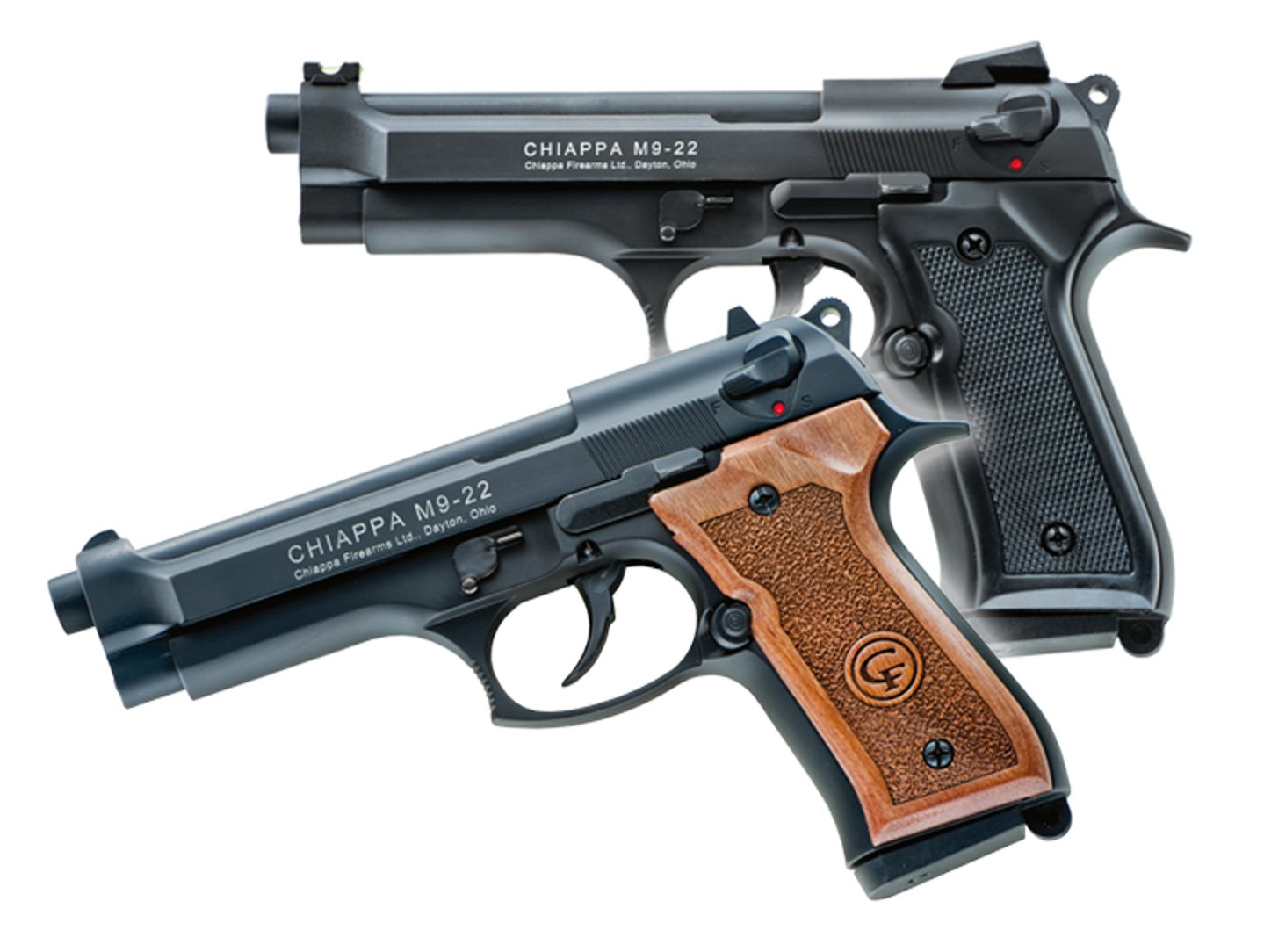 Mit einem Nachbau im Kaliber .22 l. r. der US-Ordnance Pistole M 9 führt der italienische Waffenbauer Chiappa Firearms seine KK-Replika-Serie fort, die bereits Modelle wie die an M16/AR15-Gewehre angelehnte mfour-22-Reihe und die an die Government-Pistole angelehnten Kurzwaffen vom Typ 1911-22 umfasst. Nun also die Beretta-Kopie im Kaliber .22 l.r..