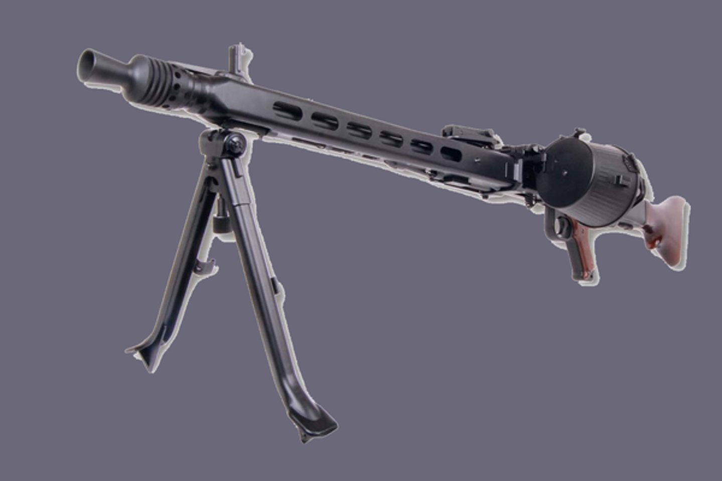 Für die Airsoft-Fraktion bietet das MG42 darüber hinaus eine Metall-Gearbox und einstellbares Hop-Up. Die Visierung lässt sich umklappen und einstellen.