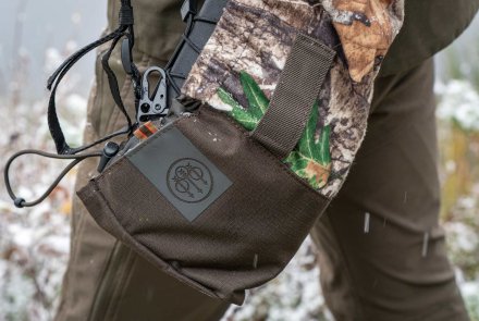 Our hunter carries his rifle in a Packable WR Gun Case made of extremely quiet and water-resistant brushed polyester (WR stands for Water Resistant). The front and back are reinforced with ripstop material. The elastic drawstring at the bottom allows the case to fit most rifles and shotguns on the market. Available in two sizes (103-118 cm and 118-135 cm) in green moss or Realtree Edge camo. The retail price is 35 and 39 euros respectively. Completing the carrying system are the padded and length-adjustable Neo rifle strap made of durable polyester with Duraflex buckles for maximum strength and reliability, and the Neo Scope Cover made of neoprene. The scope cover is made in three different lengths: 15-19 cm, 20-25 cm and 25-30 cm.