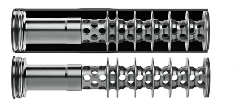 The metal components used by the Norwegian silencer manufacturer Hausken in the production of silencers have always been selected and joined together according to their specific properties. Aluminum, for example, is lighter than the steel used in the past, is easier to shape and is also cheaper. In the well-known and frequently used Hausken Jakt JD224 Ti Hybrid Titan silencer, a titanium core sits in a reinforced and hard anodised aluminum housing tube.