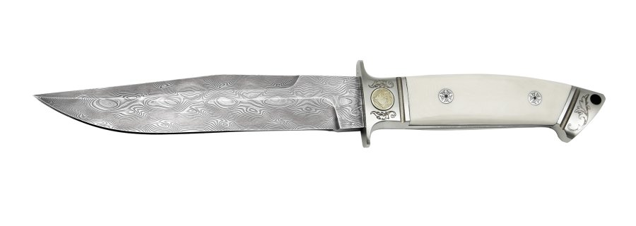 Although conceptually and visually completely different, the special series of the Puma Defender shares a common feature with the Knife of the Year: the Defender Damasteel comes with a blade made of Balbach SuperClean Damascus too. It measures 16 centimeters, which makes for an overall length of 29 centimeters. In addition to the Damascus patterns, finely ornamented engravings on the butt and bolster also draw the eye of the beholder to this knife. The Puma Defender as such has been available on the market for a long time. It was designed in the 1990s by knifemaker Richard Hahn. Just like the Knife of the Year, this special edition of the Puma Defender will probably be available from June 2022 and can also be pre-ordered online. Here, too, two variants are available to the customer: The handle scales are optionally available in buffalo horn or in the "Elforyn Super Tusk" ivory substitute material. Both collector's models are limited to 50 pieces each and come with a wooden gift box, saddle leather sheath and a certificate for the price of 1,995 euros.
